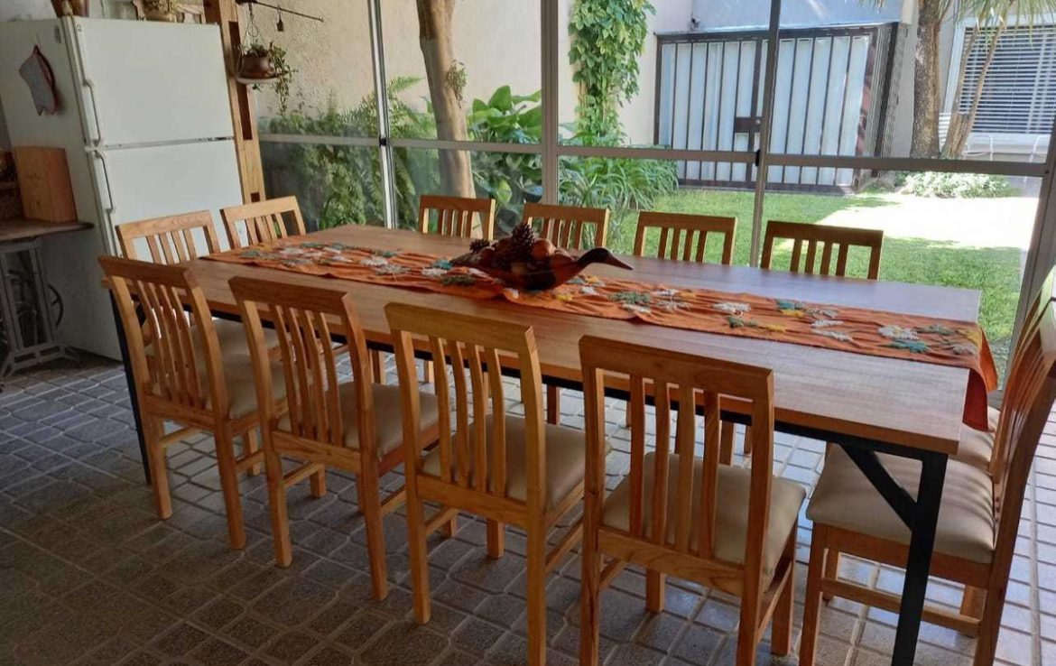COCHERA PARA 2 AUTOS; PATIO, QUINCHO CUBIERTO CON PARRILLA Y BAÑO.