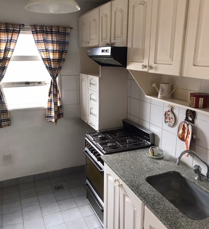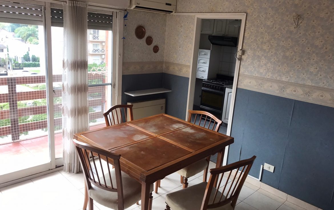 Se compone de tres ambientes: dos dormitorios, un baño, cocina y balcón.