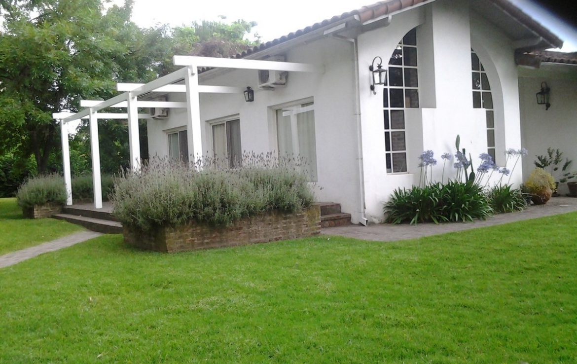 LA CASA CUENTA CON CON COCINA CON MUEBLES DE ALACENA Y BAJO MESADA, BARRA DESAYUNADORA; LIVING COMEDOR CON DESNIVEL, GRANDES VENTANALES, PISO DE PARQUET DE CEDRO, HOGAR A LEÑA; 1 TOILETTE DE RECEPCIÓN; DORMITORIO PRINCIPAL CON BAÑO EN SUITE Y VESTIDOR; OTROS 2 DORMITORIOS CON PLACARD Y ALFOMBRA DE ALTA CALIDAD; 1 BAÑO COMPLETO.